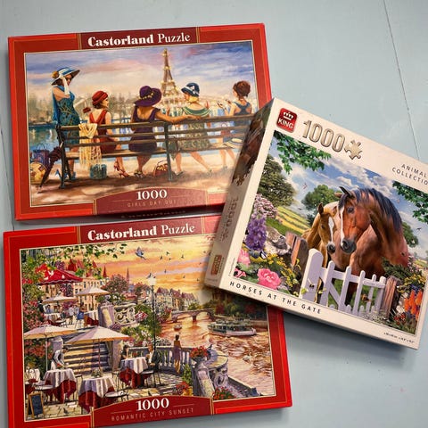 Puslespil på 1000 brikker sælges. Lagt en gang, alle brikker medfølger.