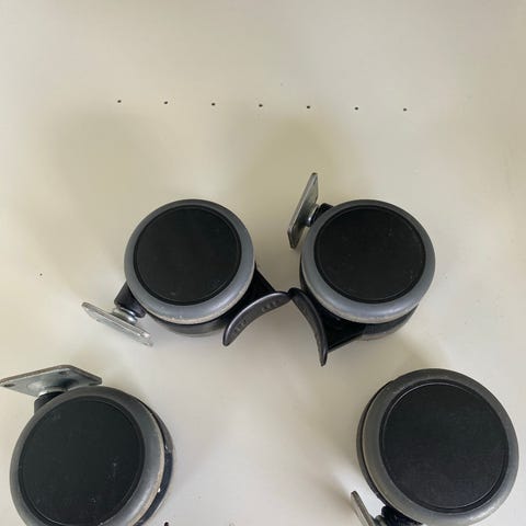 Sorte Møbelhjul med bremse hjul er 50mm i diameter og monteres med 8mm gevind.