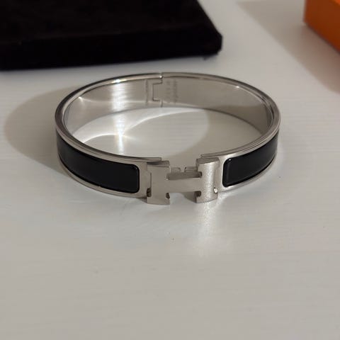 Originalt Hermés “Clic Clac H” armring i forgyldt metal og lyserød emalje.