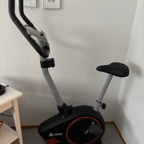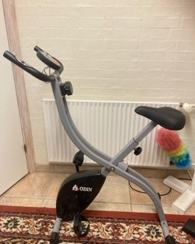 Odin B100 Foldbar Motionscykel i sort farve. Udstyret med justerbart sæde og styr, pedal med remme, og digitalt display til måling af tid, distance og kalorieforbrug. Egnet til indendørs træning og konditionsforbedring. Ny 999kr.