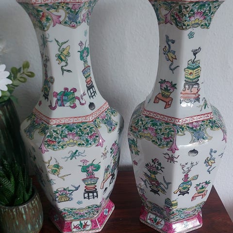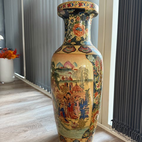 kinesisk Famille Rose havebænk af porcelæn, lavet i Canton-stil - meget tung - skal afhentes