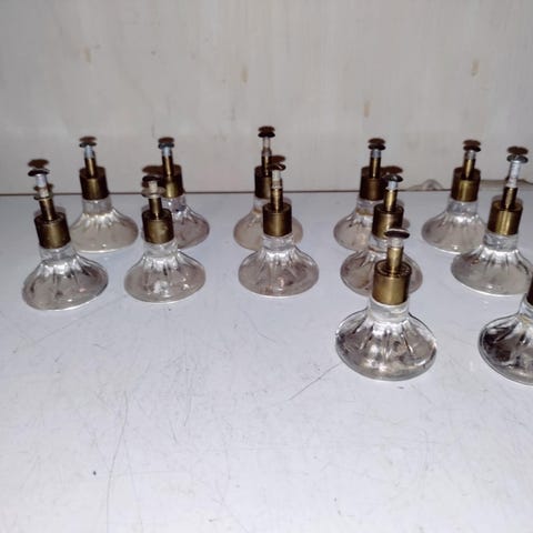10 fede glas greb til skuffer eller skabe eller hvad i vil bruge dem til prisen er pr stk kan hentes i svendborg eller sendes for købers regning bliver slået op flere steder