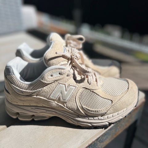 New Balance sneakers i størrelse 37 med beige farve. Skoene er lavet af mesh materiale, hvilket giver god åndbarhed. Designet til almindelig brug.