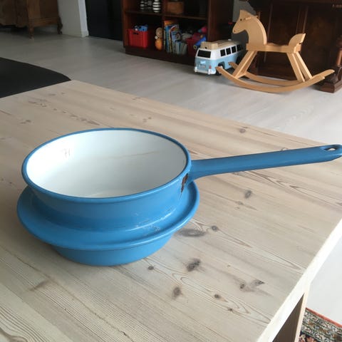 Kasserolle med ring. Knap 25 cm i diameter, 12,5 cm høj. Stemplet.