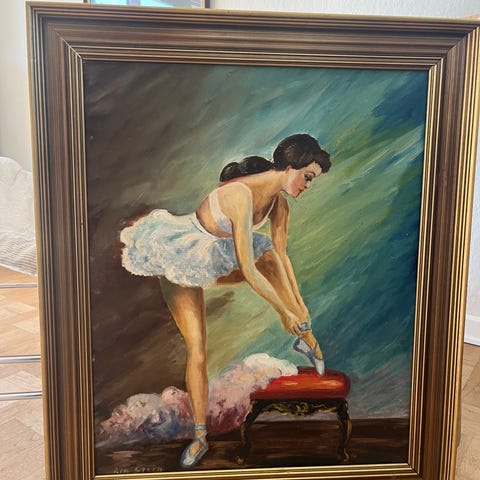 Dansende kvinder, Olie- 60x80, ukendt kunstner. Lærred skal måske strammes op, har lidt skrammer