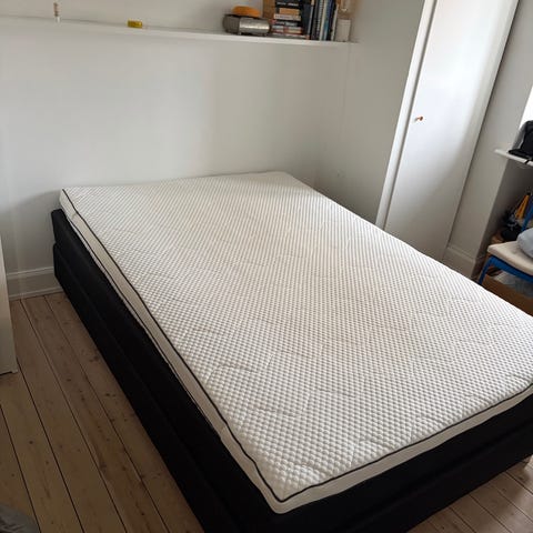Kontinentalseng fra Bedre Nætter. I god stand. Det er deres Venus Mayan model der er allergi venlig. Købt i 2018. Den fåes incl. topmadras. Fra gulv til sengebund måler den 19cm hvilket gør at man kan have opbevaringskasser under sengen. Fastheden er medium til soft.