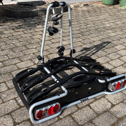Thules mest robuste cykelholder, med lås til anhængertræk, aflåselige cykelholder-arme, og vip af holder for lettere adgang til bagagerum. Er i nystand uden brugsspor