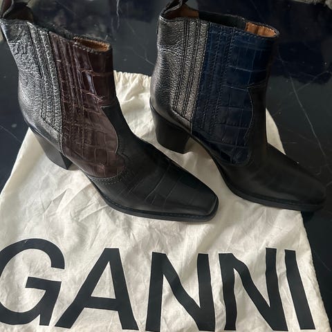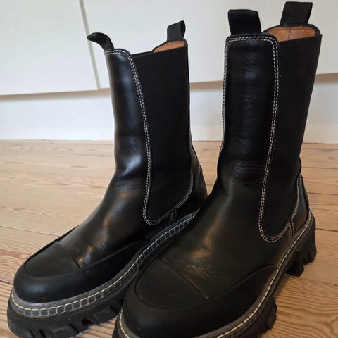 Støvler, str. 38, GANNi, Sort/grøn , Læder, Næsten som ny, GANNI Mid Chelsea boots Size 38