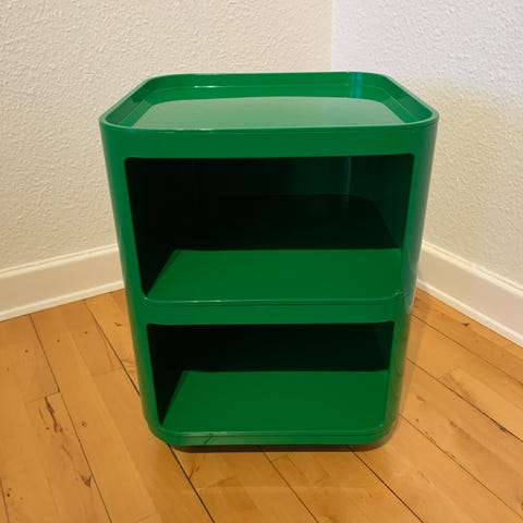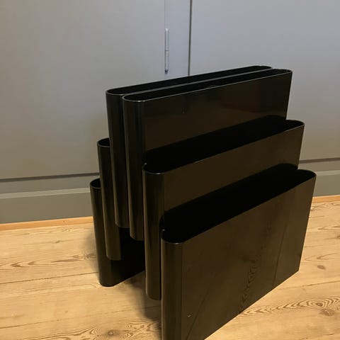 Magasinholderen er en vintagekopi fra midten til slutningen af 1970'erne. Den er fuldt og dobbelt mærket på undersiden med formpressen: Kartell 4676, designer Giotto Stoppino og fremstillet i Italien.