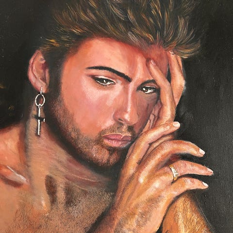 Terese Andersen (f. 1963) står bag dette pragtfulde 130 x 130 cm, billede af George Michael, Collage og akryl på lærred. Signeret TA2020. Tidl. galleripris Kr. 18.000. Kan afhentes på vores adresse i Nyborg, tæt ved motorvejen. Levering til adresse er også mulig, mod betaling. Kontakt mig gerne på mobil 29990387 for nærmere.