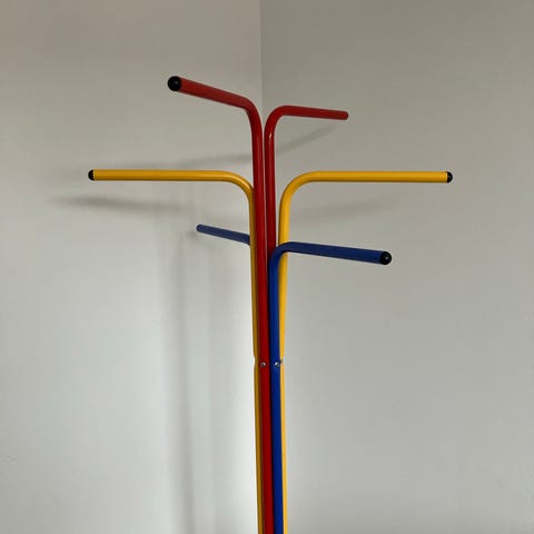 Til opbevaring af tøj eller tasker. Materialet er malet træ og egnet til daglig brug i børneværelser eller institutioner.