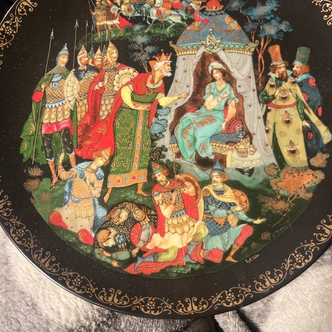 Det er en samlerplatte, der forestiller en scene fra det russiske folkeeventyr "Den Gyldne Hane" (The Golden Cockerel). Platten er en del af "Russian Legends"-serien, som blev produceret i 1980'erne.