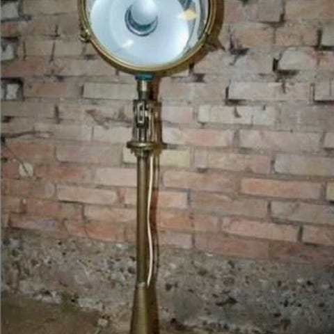 Original gammel Seematz skibslampe fra MP Pesch, Winsen/Luhe, syd for Hamborg. Skibslampen er siden placeret på stålfod og har en samlet højde på i alt 200 cm. Ny-kablet og med LED-pære i farve Guld - giver et virkeligt behageligt lys med stor spredning qua lampens diameter på 45 cm. Kan afhentes på vores adresse i Nyborg, tæt ved motorvejen. Levering til adresse er også mulig, mod betaling. Kontakt mig gerne på mobil 29990387 for nærmere.