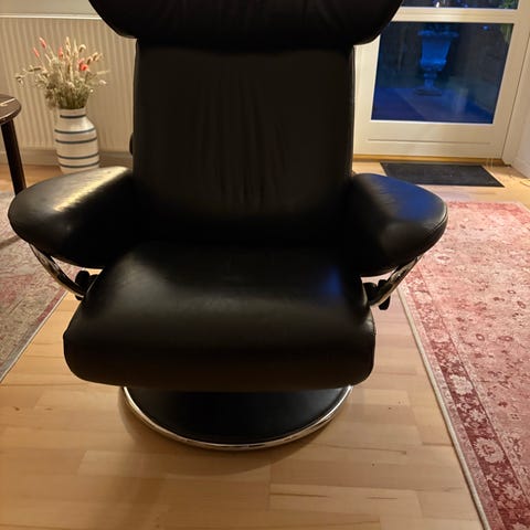 I min optik en ekstrem smuk stol som bare krammer en når man sidder i den.