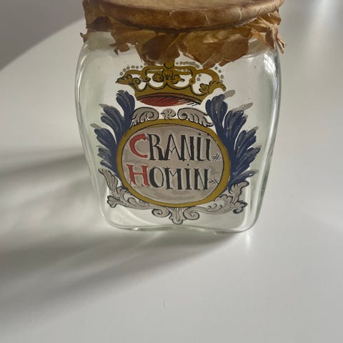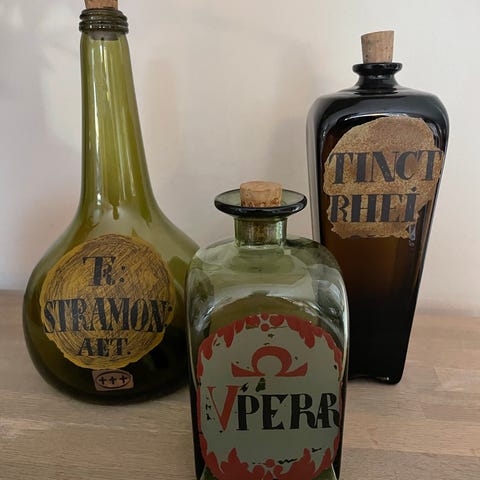 Flasken er af grønt glas med en rund bund og smal hals. Den har en korkprop og etikette.,Afhentes i:,Røde Kors Sorø (335),Bemærk at mail, chat og beskeder ikke besvares, og varen skal købes på knappen "Gå til varen"