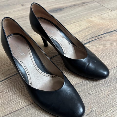 Flotte højhælede sorte sko Gabor i str 5,5, som svarer til str 38,5; hælhøjde 6,5 cm.