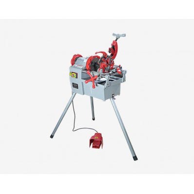 Elektrisk gevindskærersæt eller rørskærersæt med 4 forskellige skærehoveder i de mest almindelige størrelser. Udover den motoriserede skæremaskine indeholder dette sæt også en holder/rørtvinge i støbejern til montering og styring af rør under arbejdet. Denne rørtvinge skal altid anvendes og hjælper med at beskytte maskinen og sørger samtidig for at røret altid kører rigtigt i maskinen. Motoren på denne elektriske gevindskærer har frem/bak funktion og kører med kun 32 omdrejninger pr. minut og er dermed velegnet til at skære gevind i almindelig jern og galvaniseret jern. Hele sættet leveres i en praktisk plastikkuffert med plads til alle dele. Motor: 1800 watt Frem/bak funktion Mål på gevindbakker: ½", ¾", 1" og 1¼" Inkl. rørtvinge Nr. 8006116 Mulighed for tilkøb af 3/8" skærehoved - se herunder.