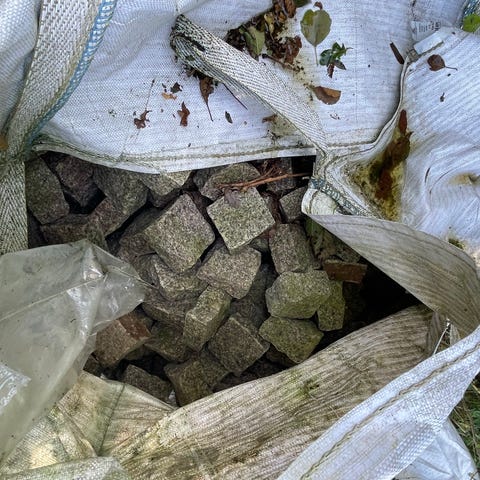 Granit brøndæksel 77 cm i diameter, 6 cm tyk, med lille hak som ses på billedet.