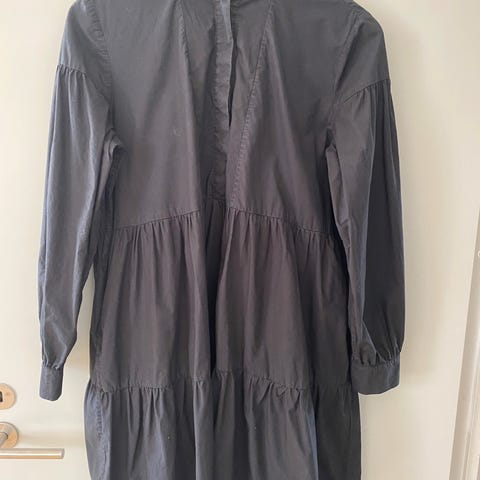 Samsøe Samsøe Hverdagskjole i størrelse M. Kjolen er sort med et mønster af små prikker og har lange ærmer. Materialet er ikke specificeret. Designet er til kvinder og egnet til hverdagsbrug.