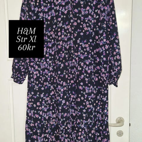 H&M Hverdagskjole i hvid, størrelse L. Kjolen har et stribet mønster og er designet til kvinder. Materiale og yderligere detaljer er ikke angivet.