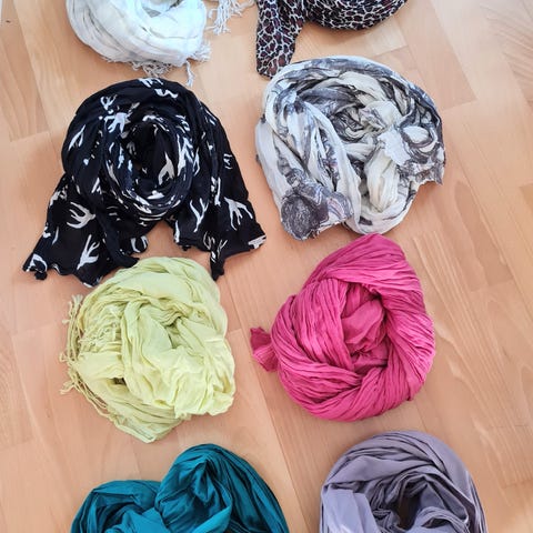 Utrolig smukt tørklæde, sort med røde polka dots, og Hummels logo.