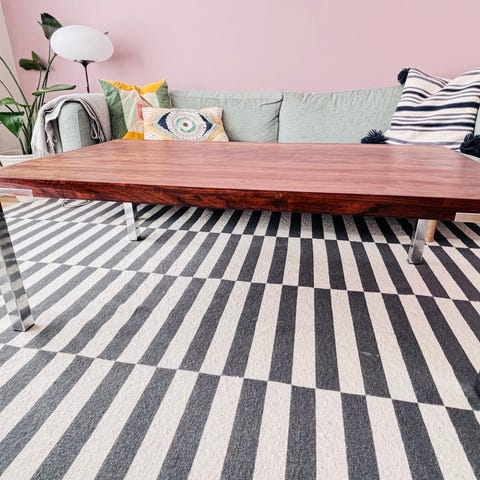 Sofabord med udtræk, fremstillet i lyst træ med metalben. Bordet har en rektangulær form og kan udvides ved at trække en ekstra bordplade (129 x60x30) ud under hovedbordet.