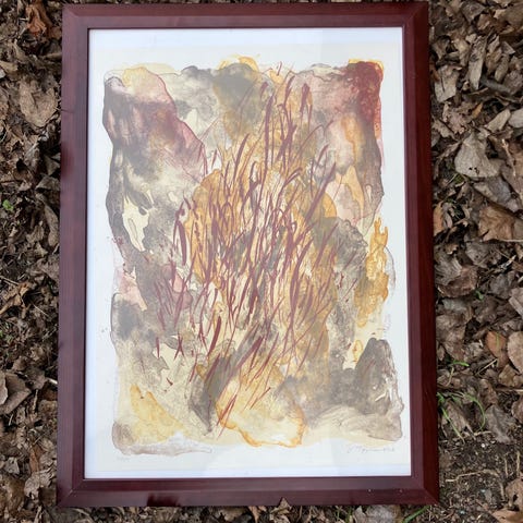 Akryl på lærred. 60x80 cm. Meget velholdt og klare farver. Med ramme.