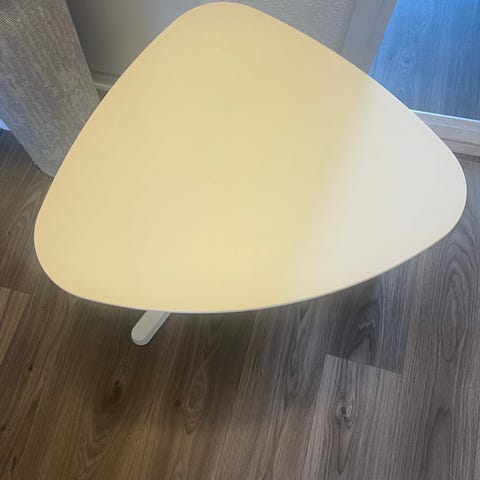 Lyserød bord. Mål: 55 cm x 55 cm. Højde 45 cm.