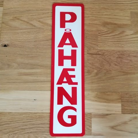 Ældre skilt til at sætte på en bil der kørte med anhænger Str. 6 x 25 cm
