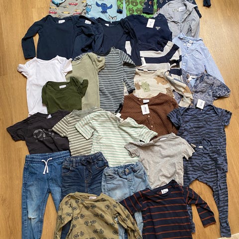 Lille tøjpakke med en julesweater samt en kort- og langærmet body i str 62