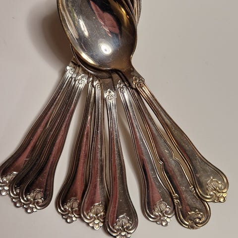 Et sæt osteknapper i pletsølv. Fra 60'erne. Fin stand. 40 kr.