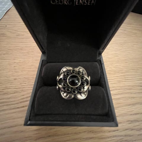 GEORG JENSEN “MOONLIGHT GRAPES” STERLING SØLV RING MED SORT ONYX STR. 52.