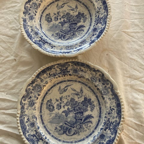 2 sølv glas tallerkener med sort mønster