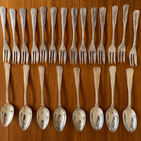 Gaflerne er i flot stand med en smuk, tidstypisk patina. Perfekt til kagebordet eller som supplement til din eksisterende COHR samling.