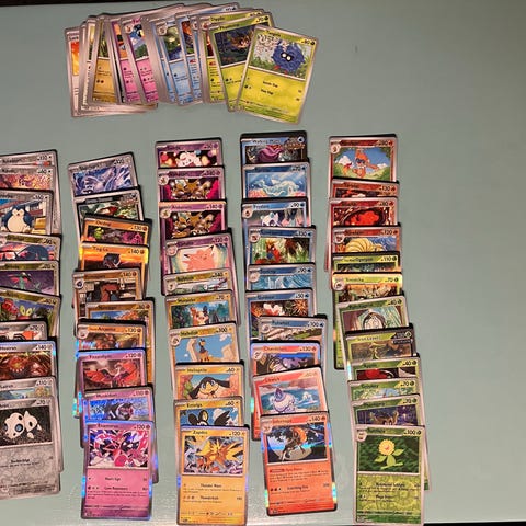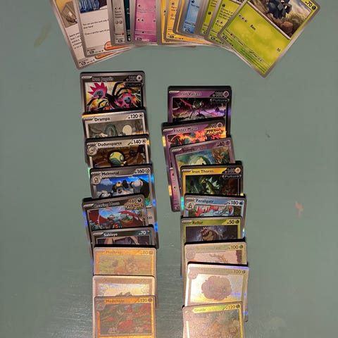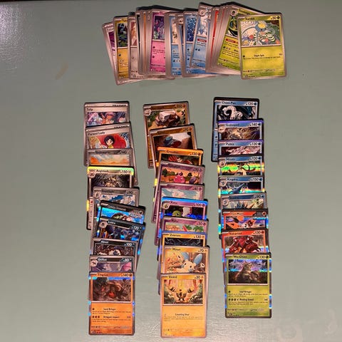 Pokémon kort fra serien scarlet og violet base set 198. Der er 36 almindelige kort og 9 holo/Reverse.