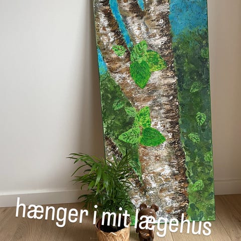 Originalt akrylmaleri, håndmalet, klar til ophængning. Unikt og dekorativt til hjemmet eller kontoret. Maleriet hedder "Drømmende birketræer".