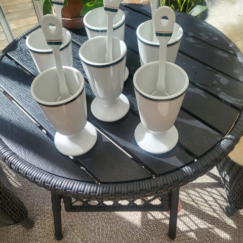 Sælger disse 4 stk krus, som er blevet flittigt brugt. De er efterhånden blevet lidt matte i overfladen, men fejler ellers ingenting. Vi trængte bare til at se på noget nyt ;-)