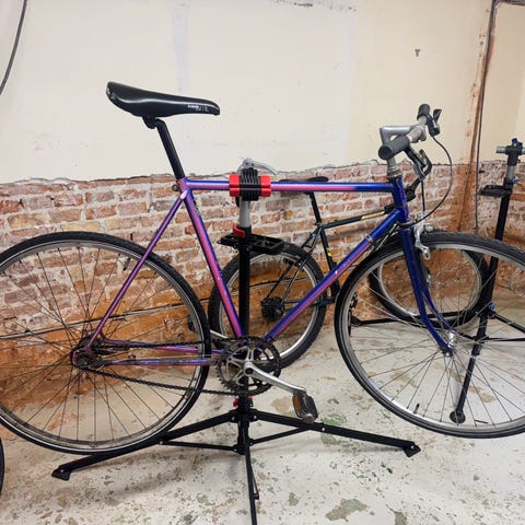 Cyklen kører fint, men gearene trænger til en justering/reparation – derfor den lave pris.