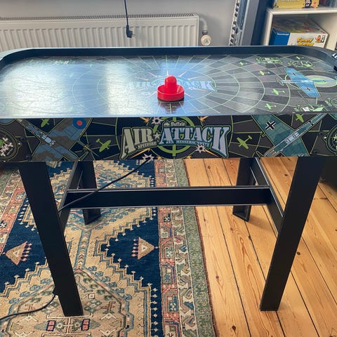 Der en lille skade på 5 cm i spillepladen. Virker fint. Har stået i sommerhus.