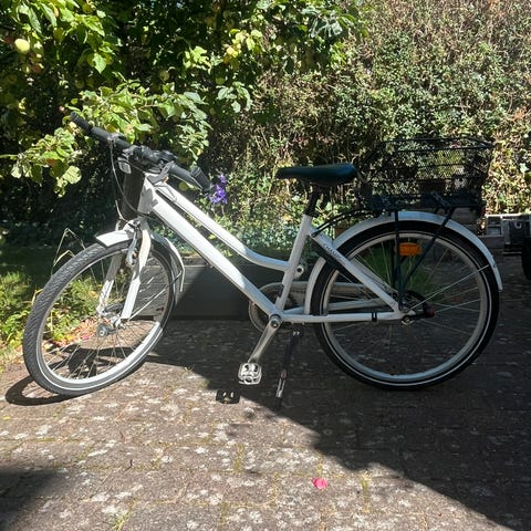 24", Lilla med gul cykelkurv, 2 år gammel, 3 gear