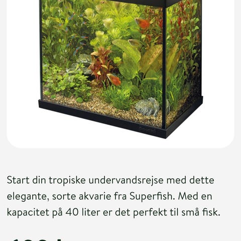 Sælger to næsten sprit nye superfish akvarier på 40l med alt inklusiv, som filter, lys og varmelegeme.