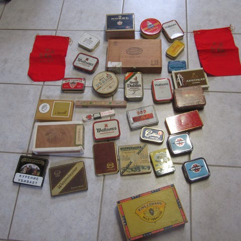 107 tomme cigaretpakker i forskellig stand. Nogle er bukkede og har skader andre er i ok stand. Både danske, polske, tyske, svenske osv.