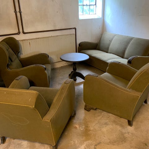 Gruppen består af en 3pers.længde 212cm, en 2pers.længde 146cm, 2 lænestole og et bord 87,5x137cm. Bordet er håndlavet i Danmark ny Haslev