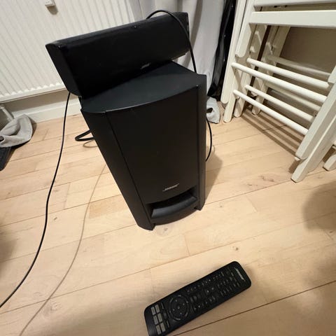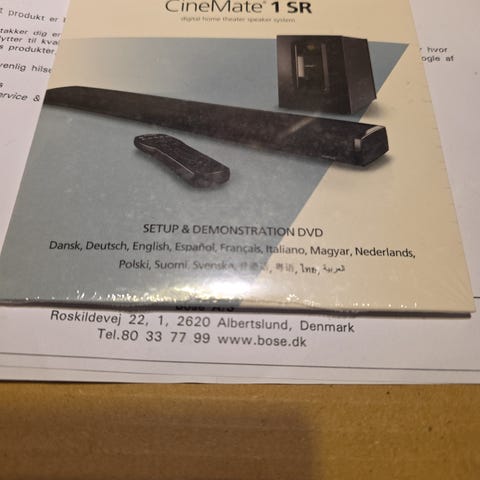 Bose CineMate Series digital home theater system, inklusive subwoofer,fjernbetjening og to satellithøjttalere.