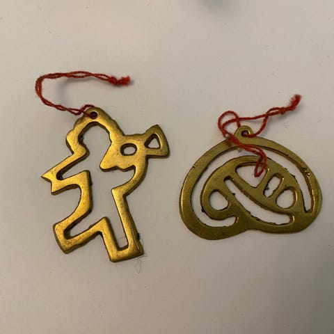 Fine messing juletræsophæng juletræspynt med guldsnor.