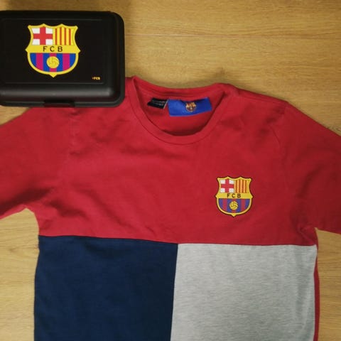 FC BARCELONA, MESSI 2017-18, STR. 140/9-10 ÅR I FLOT STAND, DRI-FIT/POLYESTER OG NY FCB MADKASSE(OFFICIAL MERCHENDISE) 14X19 CM, HØJDE 7 CM. SUPER SÆT TIL DEN LILLE BARCA/MESSI FAN. PRISEN ER FOR BEGGE DELE. NB ER VAREN AKTIV ER VAREN TIL SALG. SENDER GERNE, SÆLGES IKKE SOM FIKS FÆRDIG.