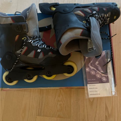 Kun brugt et par gange. Ikke den helt rigtige pasform til mig personligt, men et par virkelig gode rulleskøjter. Fremstår 99 % som fra ny.