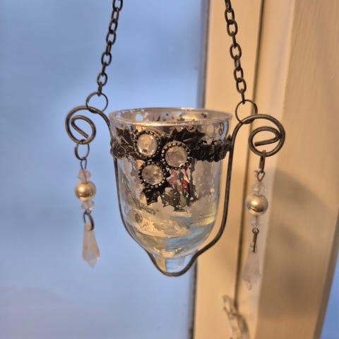 Hullet måler: ca. 4 cm. - passer til et lille fyrfadslys.