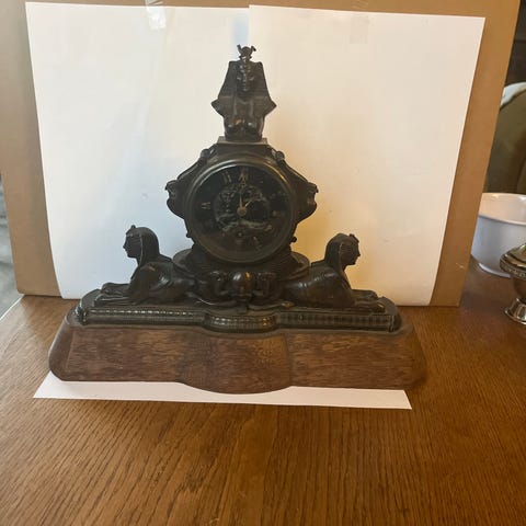 Rokokkour i forgyldt bronze. Højde 54 cm, bredde nederst 27 cm. Går fint