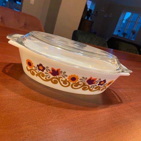 Sød skål/fad i røgfarvet glas.